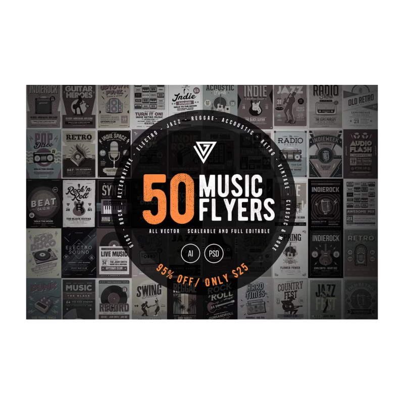 Guuver is proud to present to you our exclusive 50 Music Flyers Bundle, This bundle includes various music-themed flyer designs with multiple color versions and rafted designs that are very easy to customize! ALL ELEMENTS ARE VECTOR so you can easily customize and scale any size you want.