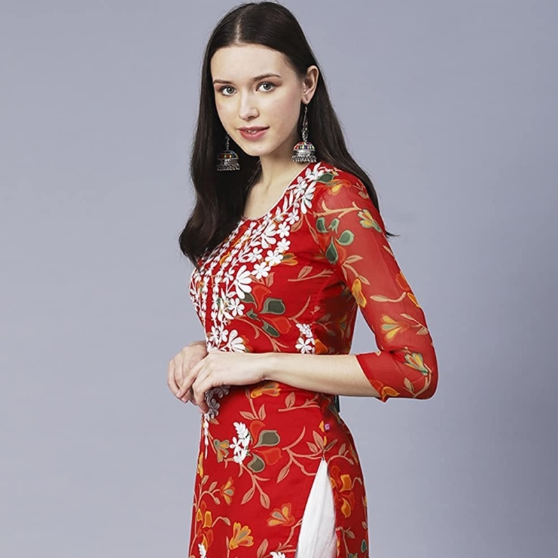 • Kurta Fabric: Georgette || Kurta Color :- Red