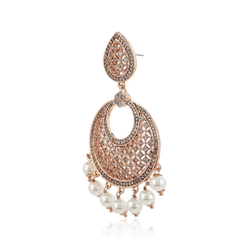 24K Rose Gold Plated American Diamond Brass Metal Mesh Drop Earring