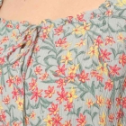 فستان مطبوع منسوج على شكل حرف A، بياقة مستديرة، وأكمام بطول ثلاثة أرباع، وبطانة مرفقة، وحافة واسعة.
