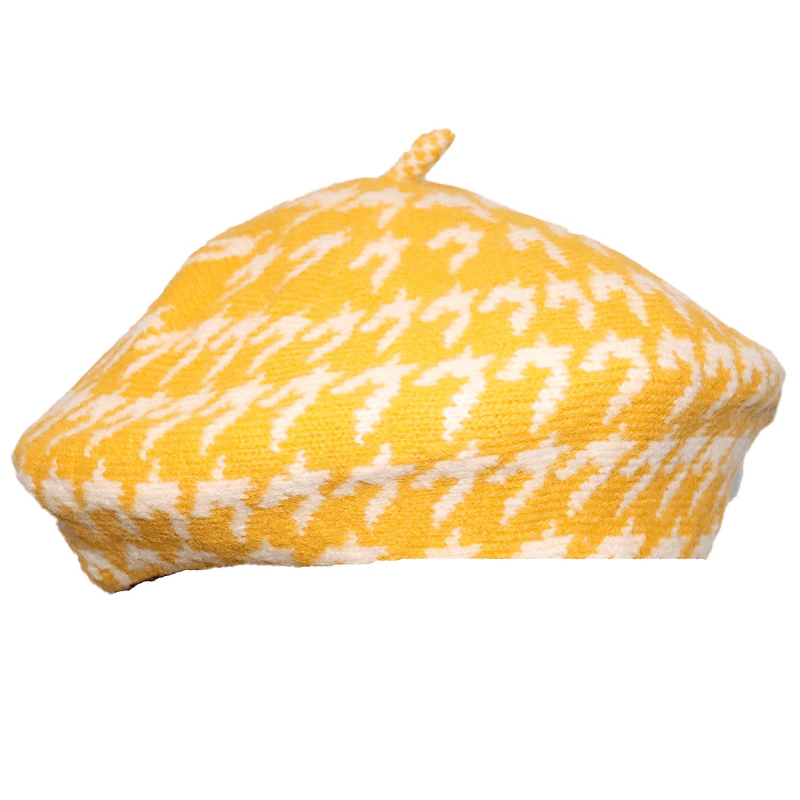 قبعة قبعة شتوية من قماش البيريه الفرنسي أبيض / أصفر