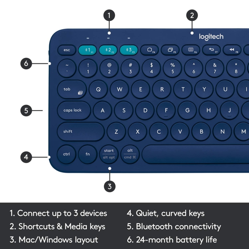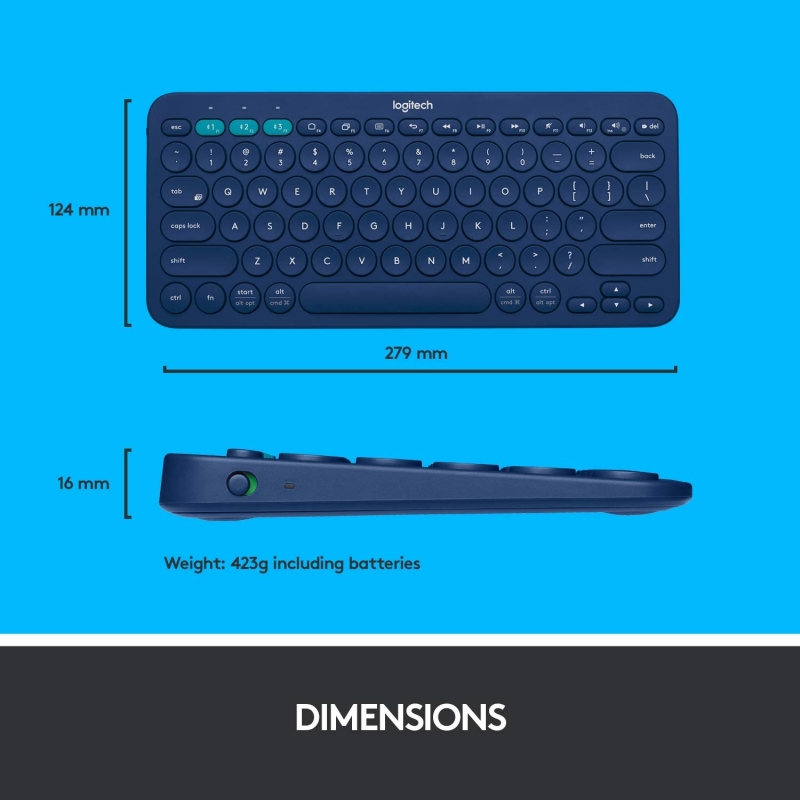 اتصال متعدد الأجهزة: قم بإقران ما يصل إلى 3 أجهزة لاسلكية في وقت واحد بلمسة بسيطة من زر التبديل السهل ؛ يتيح لك easy-Switch توصيل أي جهاز Bluetooth يدعم لوحة مفاتيح خارجية.