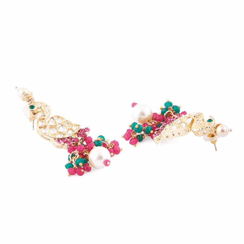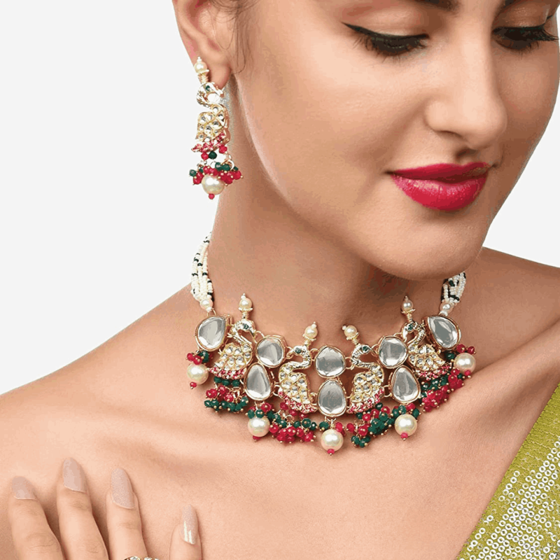 راني الوردي والأخضر الخرز العنقودي كوندان الطاووس مستوحاة قلادة