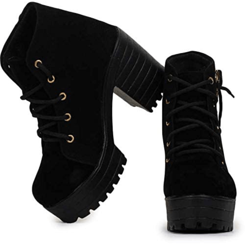 Women Side Lace Black Suede Boots