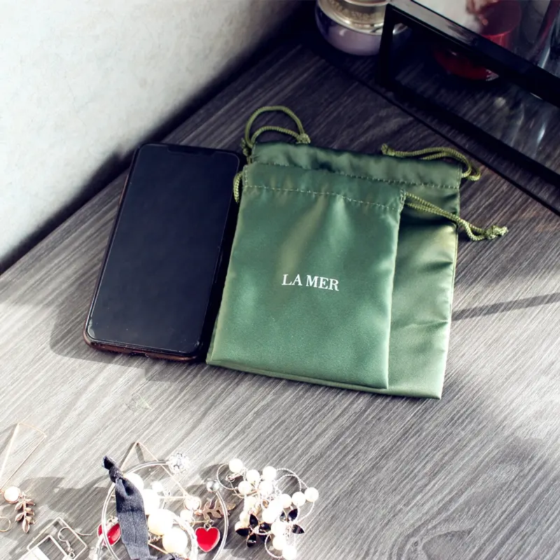 Customized Custom Logo Small Silk Satin Drawstring For Packaging Pouch Bag
