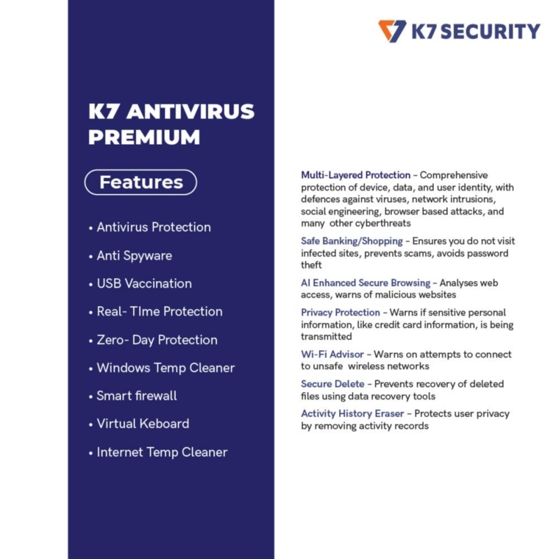 K7 Antivirus Premium- 1 User, 1 Year (Email Delivery in 2 hours - No CD)