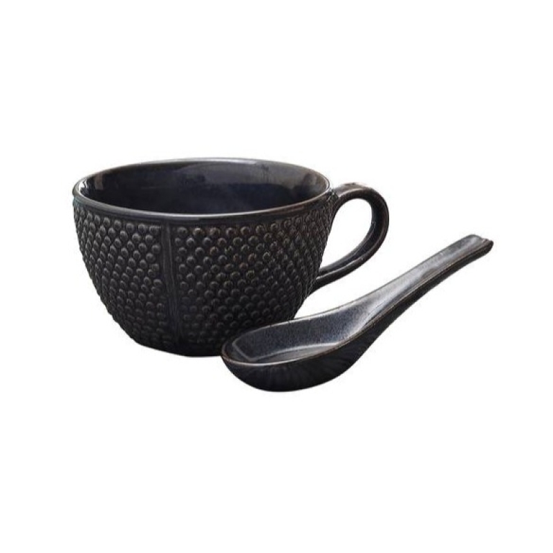 • The rustic browns and the simple design engages the sight, as you forget yourself in the soup.