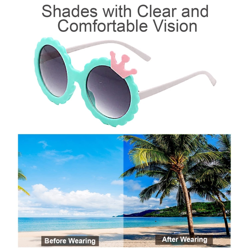 • Every color suits kids daily or party wear well and these colors are all trendy colors in all the seasons. Glasses feature UV400 protection lenses that efficiently filter out the sun radiation.