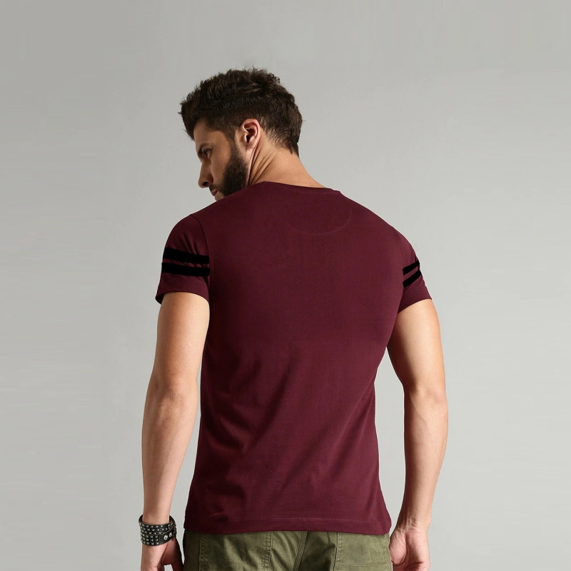 Men Maroon Curl Edge Cotton T-shirt