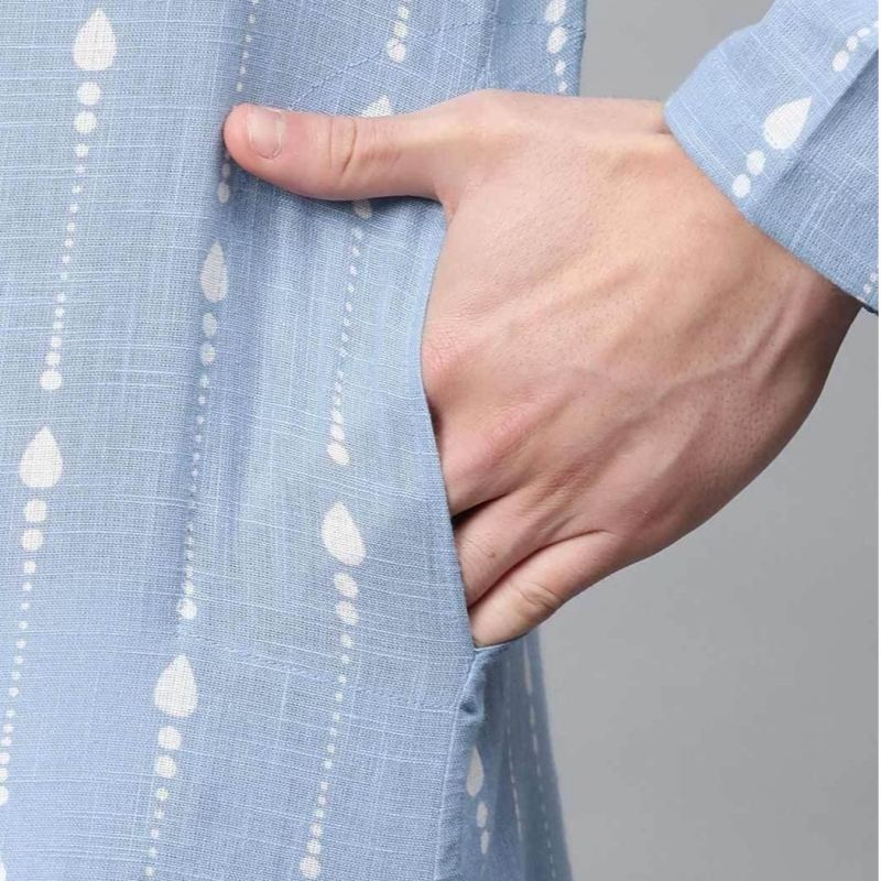 Men Printed Long Kurta with Insert Pocket