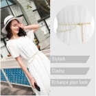 This belt is made up of alloy and faux pearl, easy and convenient to wear and take Off.