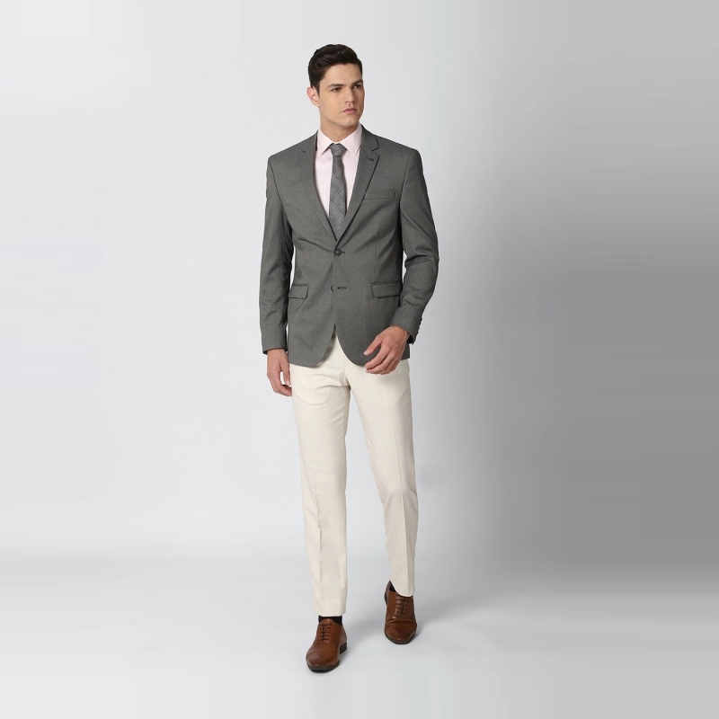 • This uber suave formal blazer by Van Heusen will be a perfect addition to your business wear wardrobe. Match with a pair of slim trousers and shirt for a complete look.