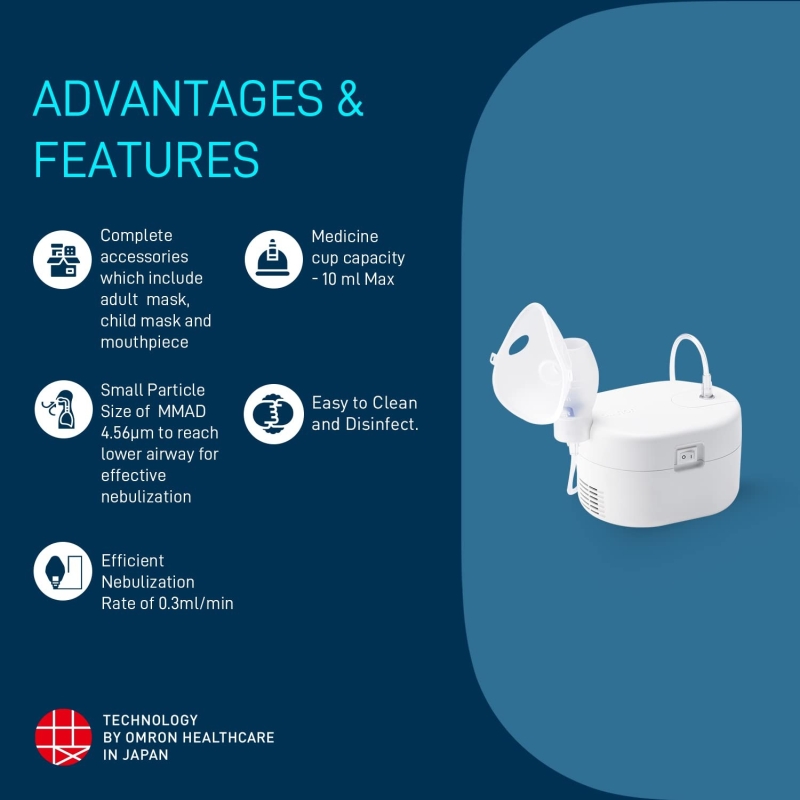 Omron Ultra Compact & Low Noise Compressor Nebulizer For Child & Adult